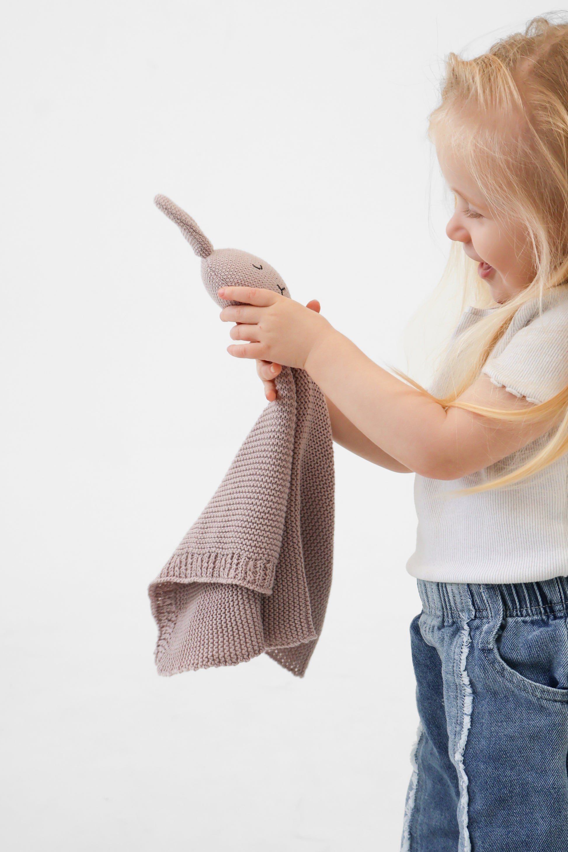 We’ve created a thoughtful gift set for a newborn, featuring two soft muslins, a baby hat, a cuddly bunny comforter and a teether.